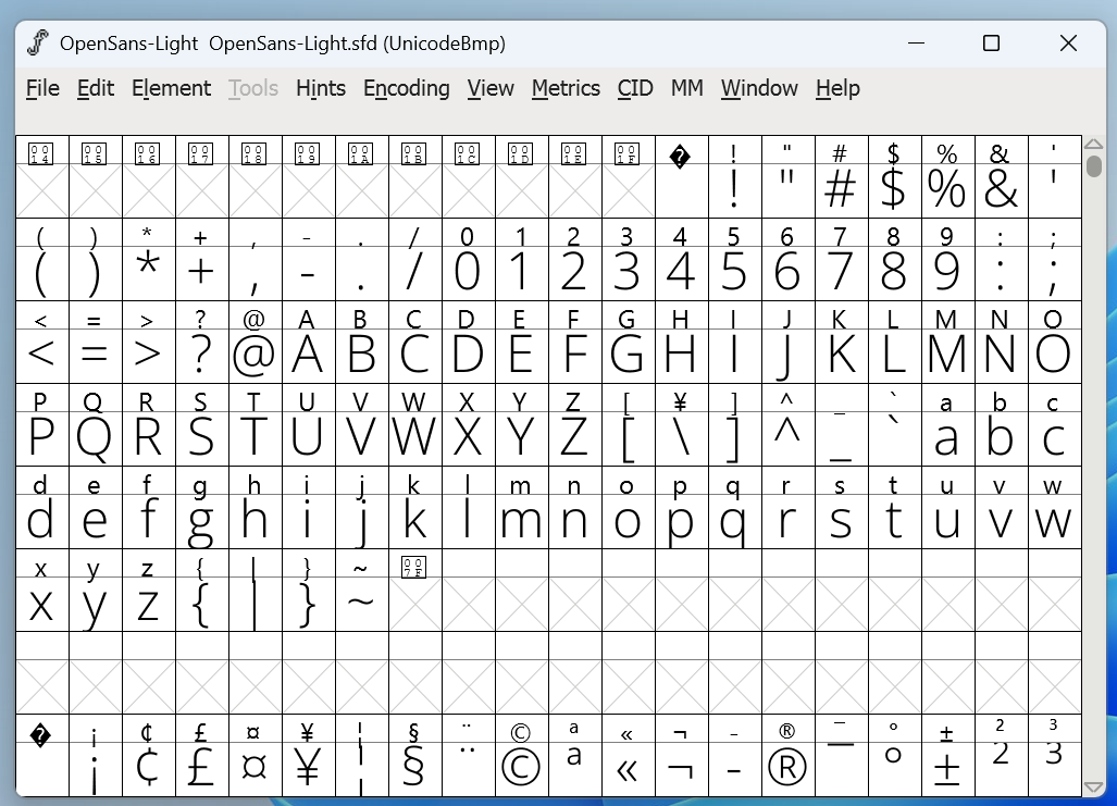 Make a copy of the Typeface you wish to use, and open it in FontForge.