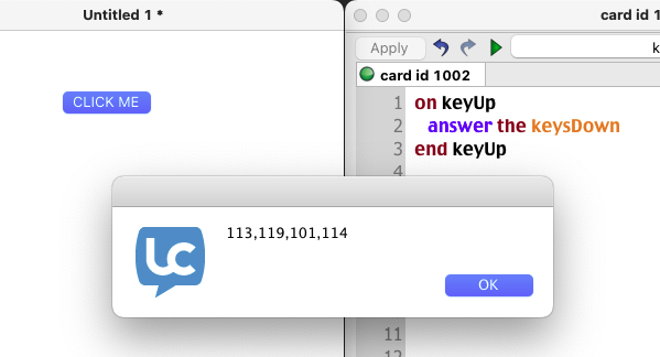 It was an assumption on my part that keyDown messages were the culprit, only because the result was pretty much the same as what happened with my own original attempts: When one holds down (rather than taps) the MCQ response key for a little while on the first test item, when the key is released the stack jumps to the last card and reports one answer correct, without ever allowing the user to view or respond to the second and third items.my MCQ stack WORKS because there is nowhere for keyDown signals to go.