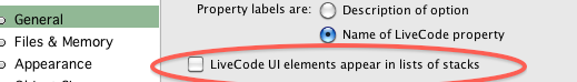 in the preferences turn off "livecode ui elements appear in lists of stacks"