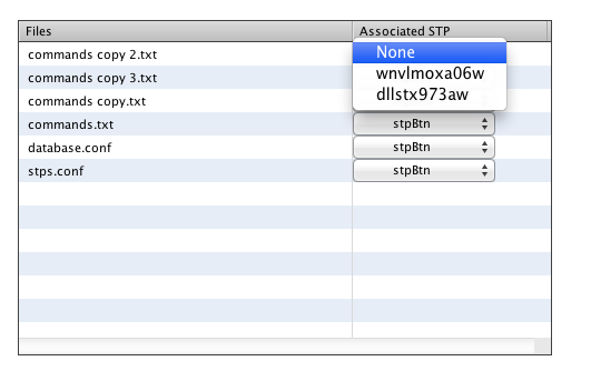 I have the typical data grid with 2 columns. One of the columns is named "stpCol" and has a column behavior. This column should have an option button for every record in the grid. That option menu button is called "stpBtn". The "stpBtn" should be generated with a list of info that is generated on openStack of the main stack.