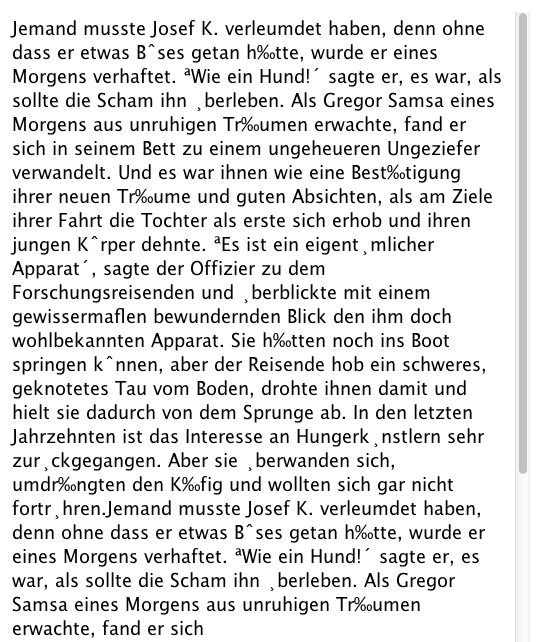 Jemand musste Josef K. verleumdet haben, denn ohne dass er etwas Bˆses getan h‰tte, wurde er eines Morgens verhaftet. ªWie ein Hund!´ sagte er, es war, als sollte die Scham ihn ¸berleben. Als Gregor Samsa eines Morgens aus unruhigen Tr‰umen erwachte, fand er sich in seinem Bett zu einem ungeheueren Ungeziefer verwandelt. Und es war ihnen wie eine Best‰tigung ihrer neuen Tr‰ume und guten Absichten, als am Ziele ihrer Fahrt die Tochter als erste sich erhob und ihren jungen Kˆrper dehnte. ªEs ist ein eigent¸mlicher Apparat´, sagte der Offizier zu dem Forschungsreisenden und ¸berblickte mit einem gewissermaflen bewundernden Blick den ihm doch wohlbekannten Apparat. Sie h‰tten noch ins Boot springen kˆnnen, aber der Reisende hob ein schweres, geknotetes Tau vom Boden, drohte ihnen damit und hielt sie dadurch von dem Sprunge ab. In den letzten Jahrzehnten ist das Interesse an Hungerk¸nstlern sehr zur¸ckgegangen. Aber sie ¸berwanden sich, umdr‰ngten den K‰fig und wollten sich gar nicht fortr¸hren.Jemand musste Josef K. verleumdet haben, denn ohne dass er etwas Bˆses getan h‰tte, wurde er eines Morgens verhaftet. ªWie ein Hund!´ sagte er, es war, als sollte die Scham ihn ¸berleben. Als Gregor Samsa eines Morgens aus unruhigen Tr‰umen erwachte, fand er sich