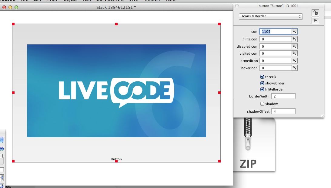 To make the correct icon appear, create an image in one of your application's stacks. ((Well, does this mean I HAVE to create an image using the tools in the tool box, or can I import a png or gif))?