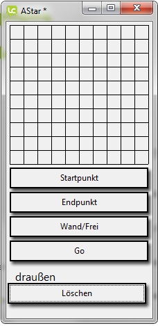 Now im at the point where i wanted to do something more "advanced". So i started to write a simple A Star implementation. The interface and everything works - no problem here (see picture). However i have two Problems: