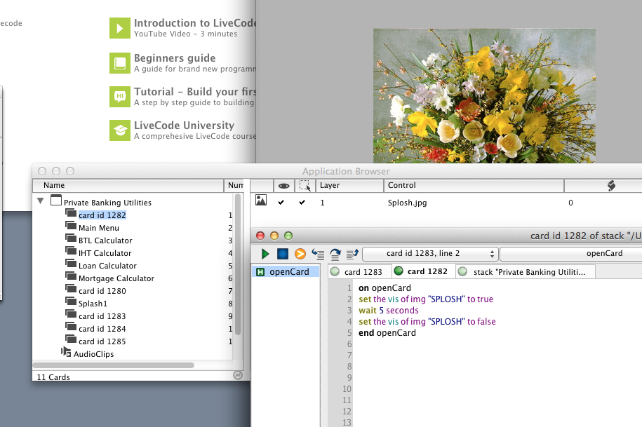 Lol - but it doesn't quite, yes I do get that screen up with the flowers on but i was expecting it to move to the next card after 5 seconds but it doesn't it just remains on that card. I have tried adding the lineKlaus wrote:When it works, then it is correct!