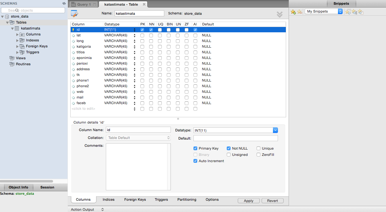 put "katastimata" into mytable