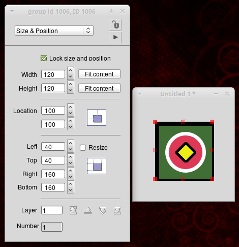 HOWEVER, if I resize my group to 120 x 120 pixels the component objects end up being displaced: