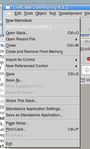 If you have 1 mainstack open, and want a substack of it, you can do that from the file menu....