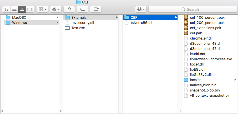 Yes there is a CEF directory along with a tsNet-x86.dll.