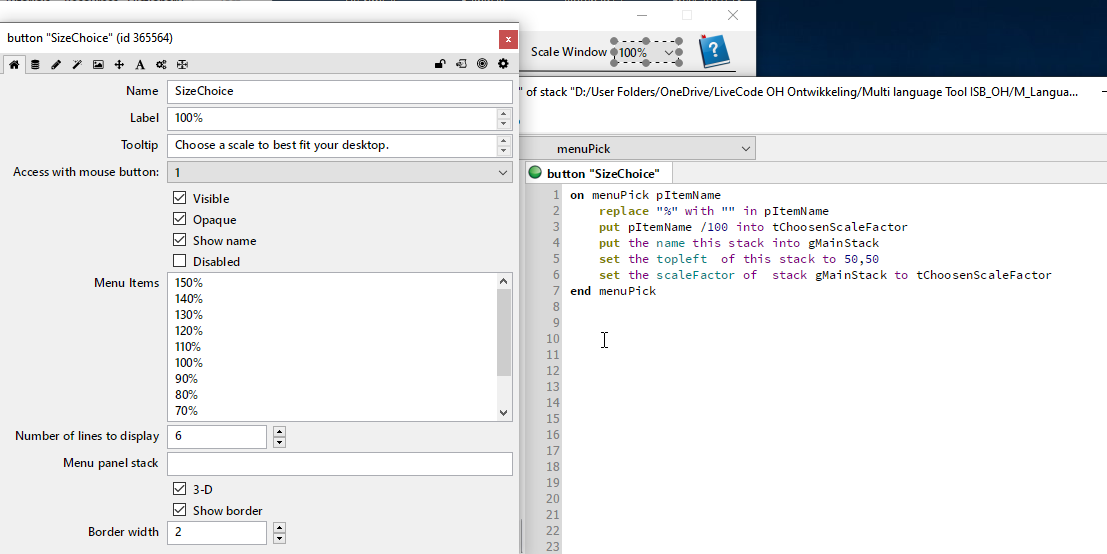 One note of caution: Whenever starting to deal with resizing, be sure to save often (and before invoking the resize handlers). Even better to keep multiple revisions. More than once I had something wrong with my code and when I adjusted the window size everything went so bad that I had to revert to the last saved stack (opening with messages locked may be needed in this case).