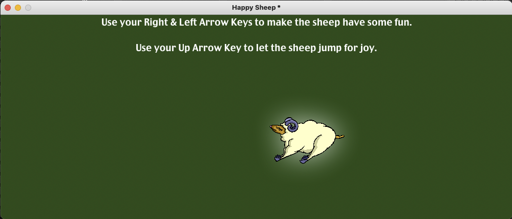 The gif is of a walking sheep which moves to the points of a curve (more of a straight line) starting about centre and 2 thirds down of card to bottom right of card.