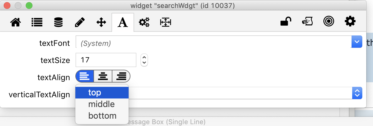 The native field offers top, middle, and bottom vertical text alignment.