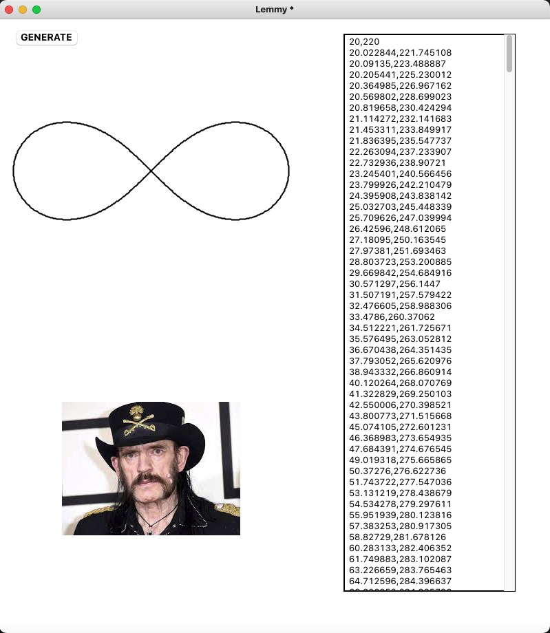 put (220 + (A * cos(t) / (1 + sin(t)^2))) into X