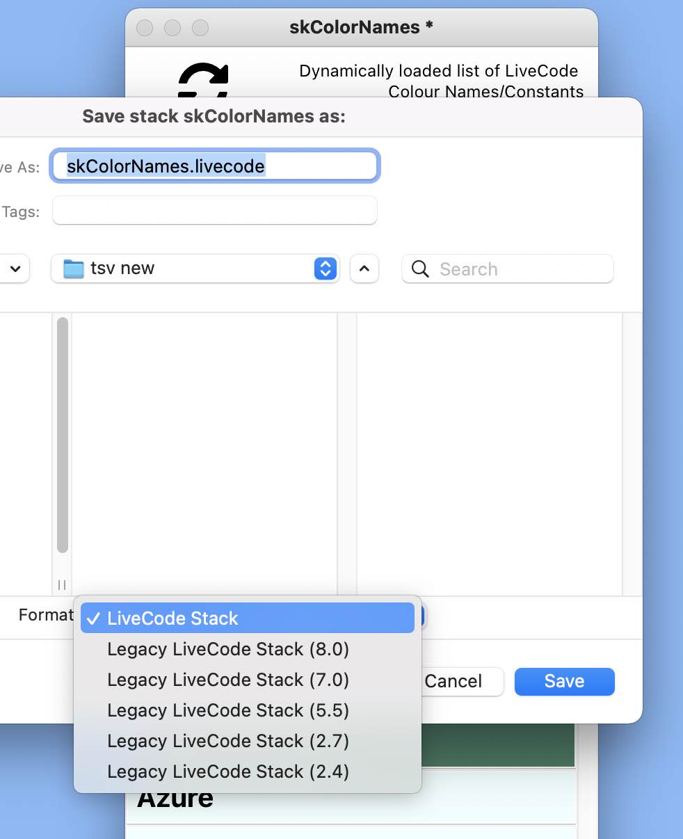 Save as defaulting to Legacy Livecode Stack (7_0)