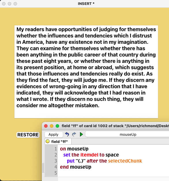 I found the function clickChar. It returns the character the user has clicked on, which is fine. But how can I insert "(·)" after this character? I need to get the position of the clicked char in the field, somehow - but how? Other solutions?