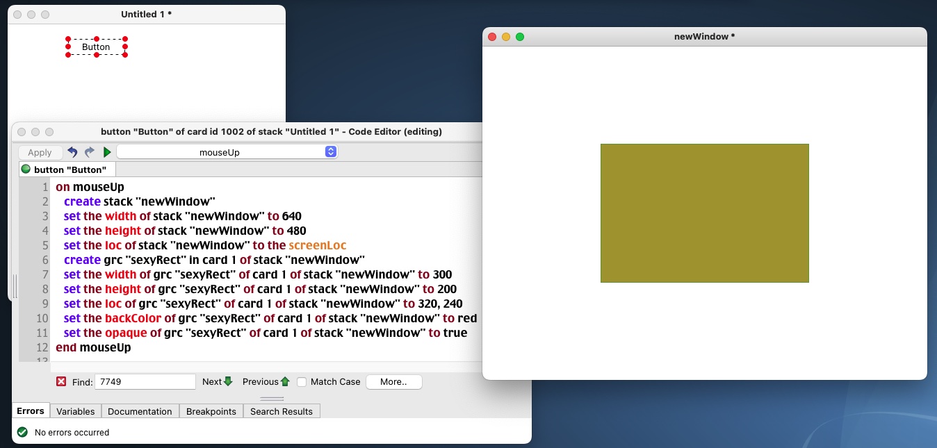 create grc "sexyRect" in card 1 of stack "newWindow"