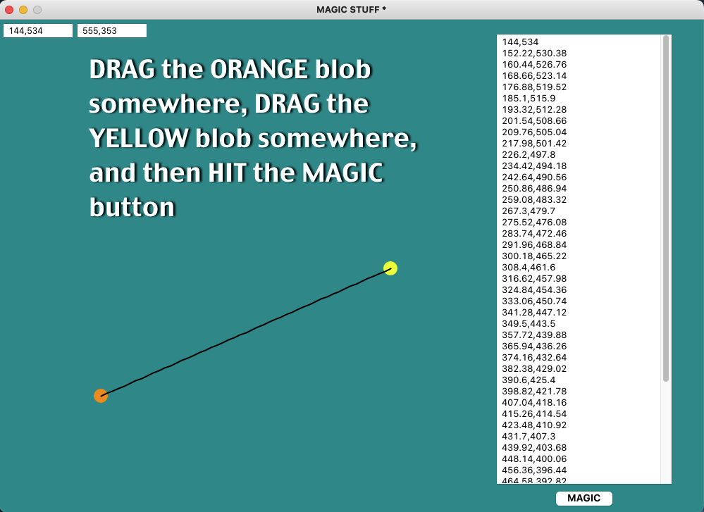 hi, I understand the code of your stack, but the problem is that you create a line that goes in a random direction and therefore you can afford to create it with many points, but I in my stack am not trying to move the ball in a random direction but in the direction that the user dragged the ball and what I cannot understand is why the line created in my stack has only 2 points and therefore the trick you use in your stack to decrease the speed in every point of the line is not possible to do it in my ... :roll: