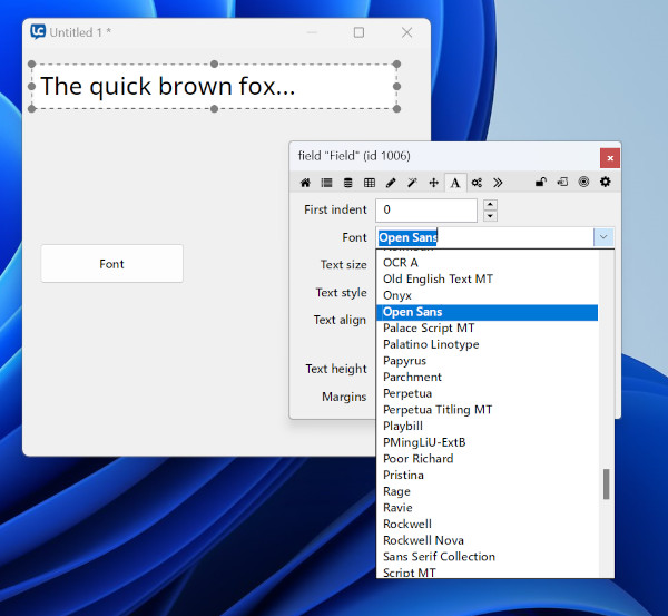 set the textfont of fld "f1" to "Open Sans" -- This changes the font to Open Sans (great)