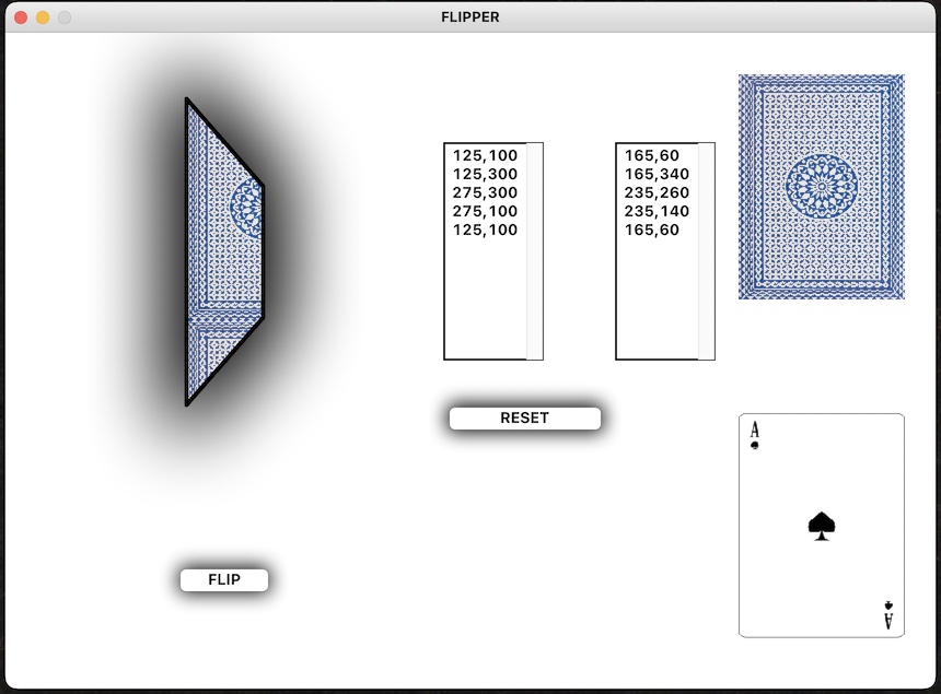 If you had say, 5 images, each skewed in a way that matched your trip in points for the n-gon's transformation, you could then simulate a pretty convincing card turn over.
