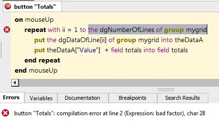 repeat with ii = 1 to the dgNumberOfLines of group "mygrid"