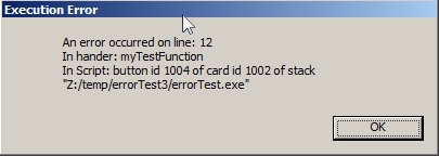 as a comment to turning off Script Debug Mode and hitting an errorDialog routine. Actually that has everything to do with errorDialog. That's the IDE's builtin errorDialog handler in action. If you turn on Script Debug Mode you'll end up in the script editor debugger with the errant line highlighted. In a standalone you won't have the IDE available, so if you want to see the errors you'll have to set lockErrorDialogs to true in order to trigger your errorDialog handler.