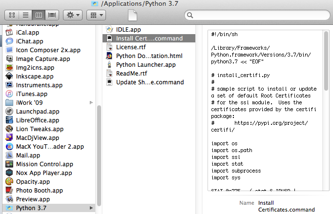 stackoverflow wrote:The Python 2.6.5 installer modifies your ~/.bash_profile file to put Python 2.6.5's bin directory at the start of your $PATH, ahead of /usr/bin which is where the OS's default Python interpreter lies. That profile is automatically read when you log in via Terminal, but not when using do shell script. You either need to specify the full path to the python executable you want (probably the best option), or you could have your script read the bash profile beforehand (though be aware that do shell script uses sh, not bash):