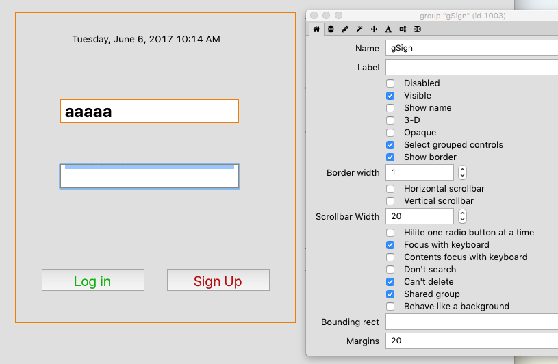 next, I edit the last field outside the group and empty the textSize property from the inspector palette