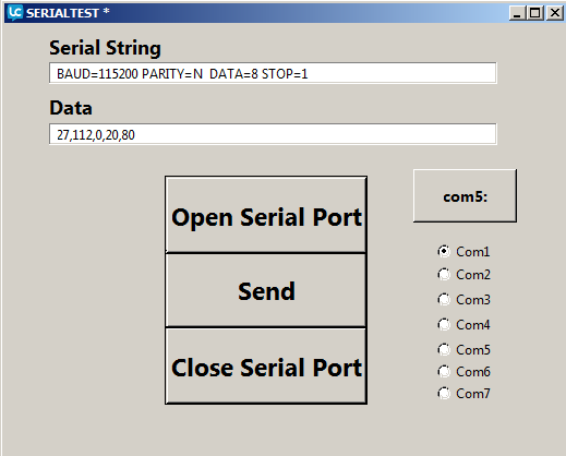 If I use Realterm (a great alternative to the missing Hyperterminal) and send the same string as numbers which are sent as the characters by the program , the cash draw WILL open.