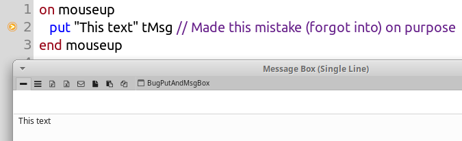 if i by mistake do the following statement 'put "xyz text" tMsgVar' (I forgot the into by purpose).