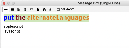 "put the alternateLanguages" gets the same results: AppleScript debugger (2x) and javascript.