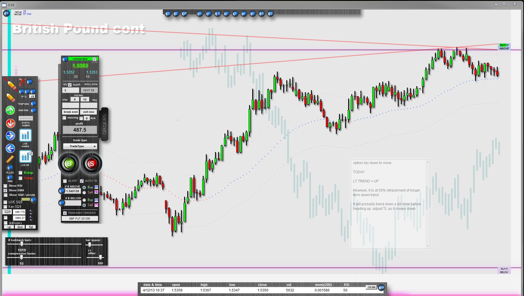 Here is a screen shot of a single copy of my app "G59" running. I have 16 copies running at the same time. Each is connected to a live data server.