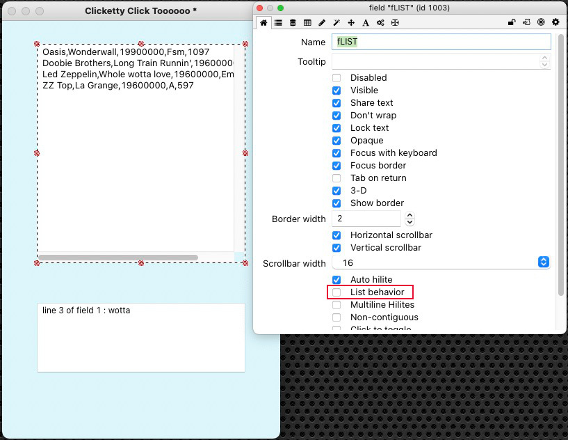 put "You clicked item" && tNbItems & "=" & item tNbItems of line tNoLi of fld "fText" into fld "fDev"