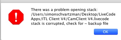 So, take another look for "CamClient V4.livecode~" If you find that, just remove the ~ and see if you can open the stack.