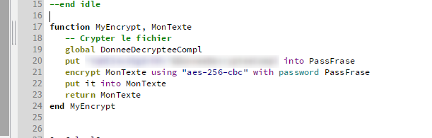 encrypt theStrg using "aes-256-cbc" with password thePass and salt MySalt