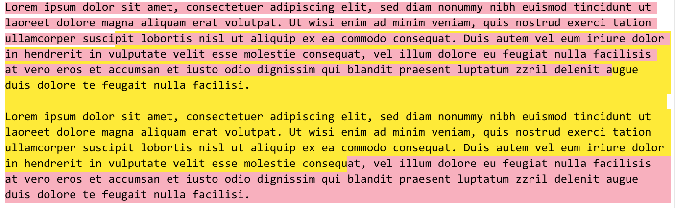 Apart from the visual difference in that the background is not solid in the top para, I notice that in the second para when I select, the selection color (yellow) shows on top of the background color, but in the top case it does not.