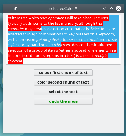 I would be grateful for any insights as to the mechanism. is there a way to set bg color to a set of chars and still show selection color?