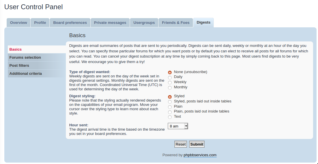 I am a tad old fashioned and also in a unfavourable timezone so being able to promptly respond on either the forum or mailing list is usually out of the question. So, rather than get dribs and drabs I subscribe to the digest edition of both the list and the forum.