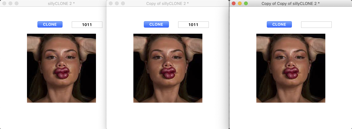with a single button 'CLONE' and as single field 'fBTN" on a card.