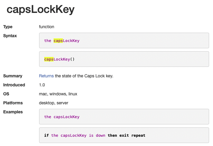 Only a function, the "capsLockKey" tells you what that key is up to, and functions have to be explicitly queried by you under script control.