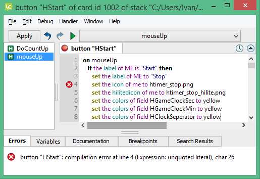 Here is my short story... Everything was working fine - all code was running without any problems, but then, suddenly, I got "Unquoted literal" error for almost every button in my stack that has some code. Weird thing is that SAME code was running fine, but suddenly it went weird.