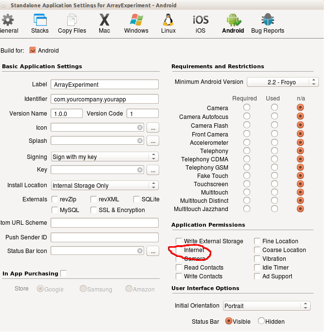 Standalone Application Settings for ArrayExperiment - Android_003.png