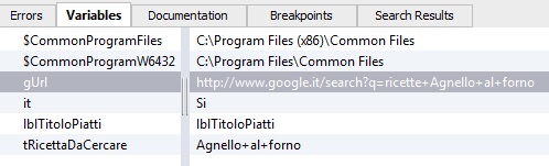 "gUrl" variable is the global containing the full url to find, the last "tRicettaDaCercare" containing the content of the selected row of a field.
