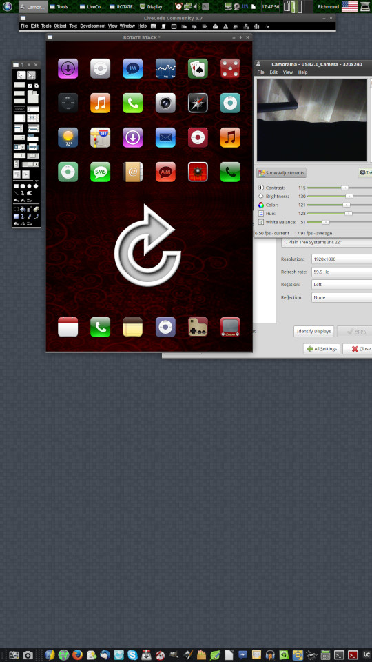 SparkOut wrote:he's trying to maximise the view of a hi-res (portrait) layout on a low-res screen while editing the stack. The final app is not going to be a sideways view on the target device.