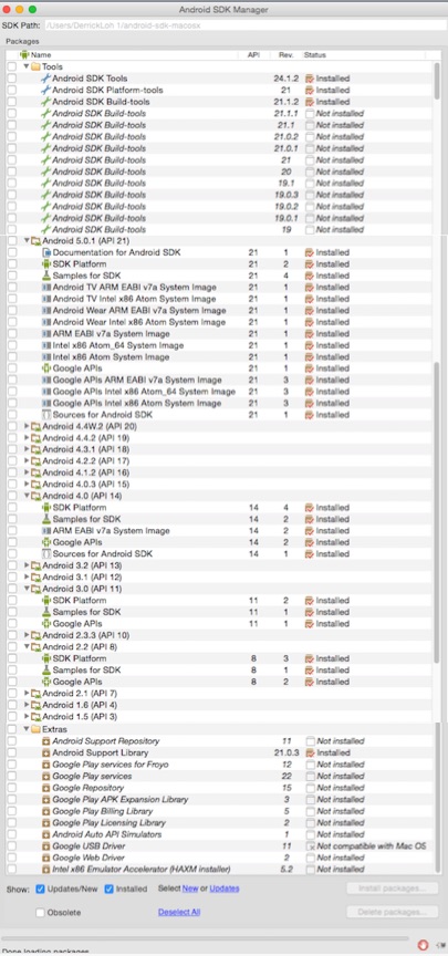I would have imagined that it doesn't have to be my own key too... But anyway, this is what I have installed for the Android SDK: