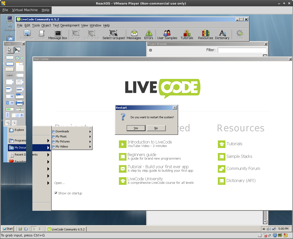 This is Livecode Community 6.1.0 running on ReactOS Beta 5