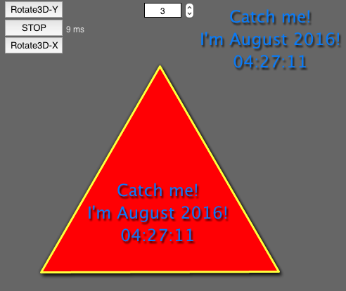 The radius is then set to keep the ratio radius/N = constant (here constant=10). - the "rotation speed" of millisecs per rotation-step (step is here 48/N degrees).