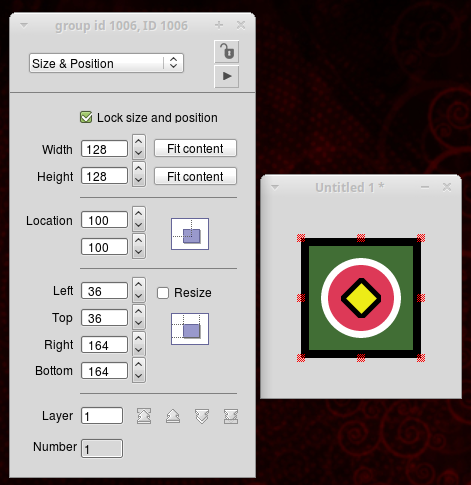 HOWEVER, if I resize my group to 120 x 120 pixels the component objects end up being displaced: