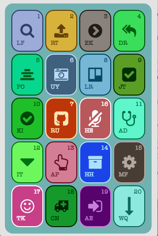 IconGrid is a widget that displays a rectangular grid of draggable colored rectangles (optionally rounded) that may serve as "buttons".