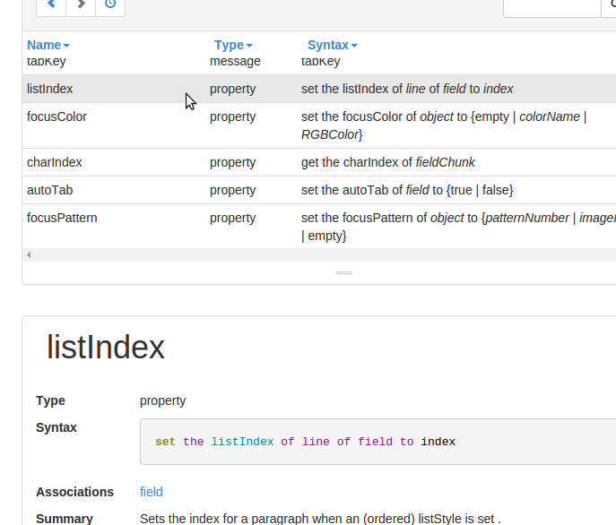 The main issue I have is reading the documentation. For example, I am working with a Table Field. I would like to know all of the properties and actions of a Table Field. I cannot find anything on the Doc API where it shows me all of the properties and actions of the Table Field.