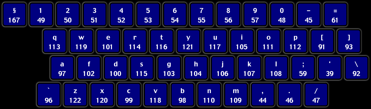 HOWEVER, anyone can work out those rawKey codes by comparing their position in this picture with their physical keyboard.
