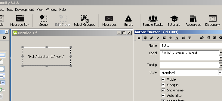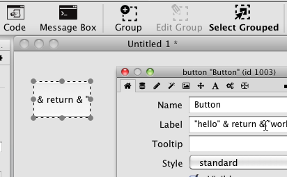 - my initial tests were done in much earlier versions which (apparently) don't have multiline button labels in the PI, but you can do through code, and